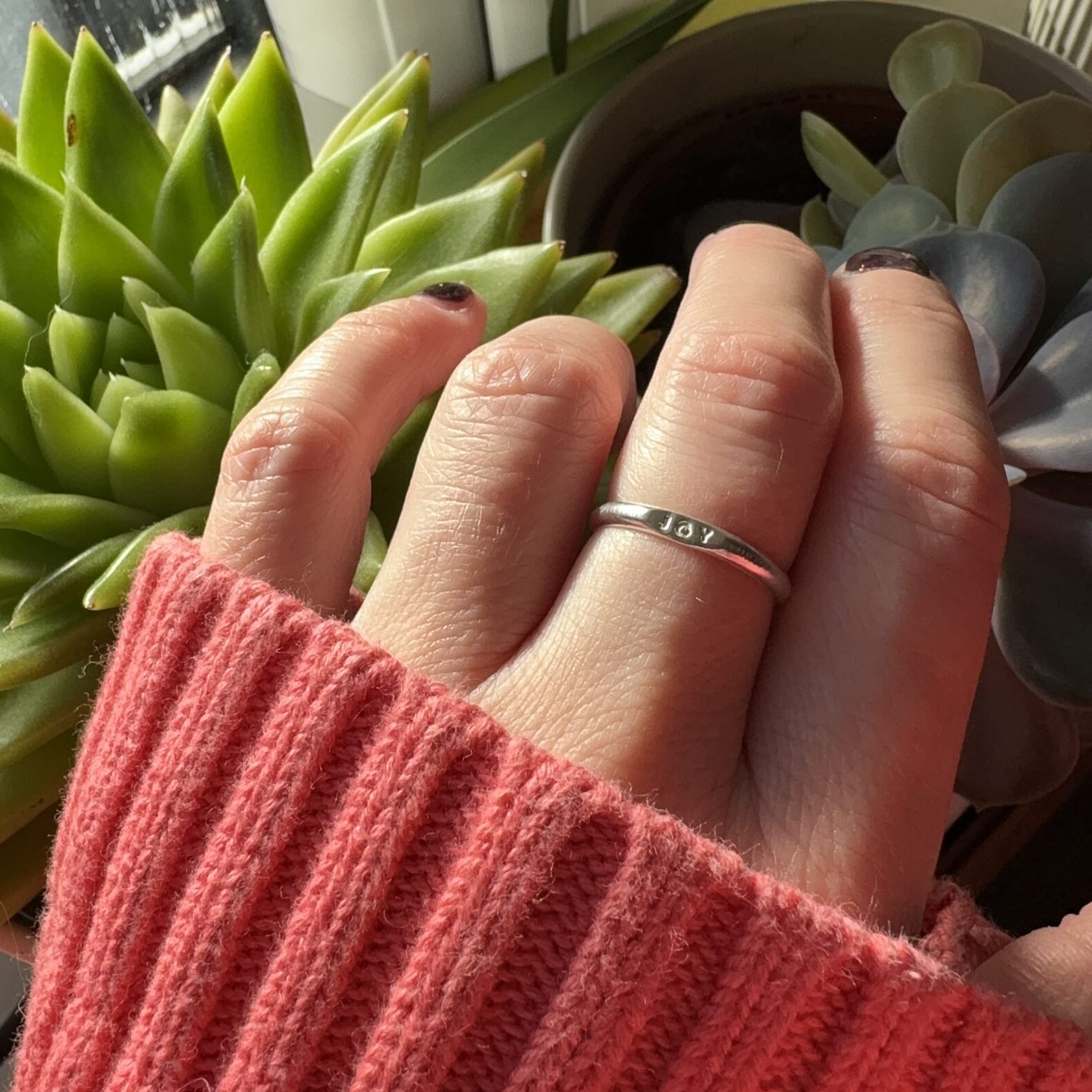 An affirmation ring that reminds you to focus on the ‘joy’ life brings, when you wear it.