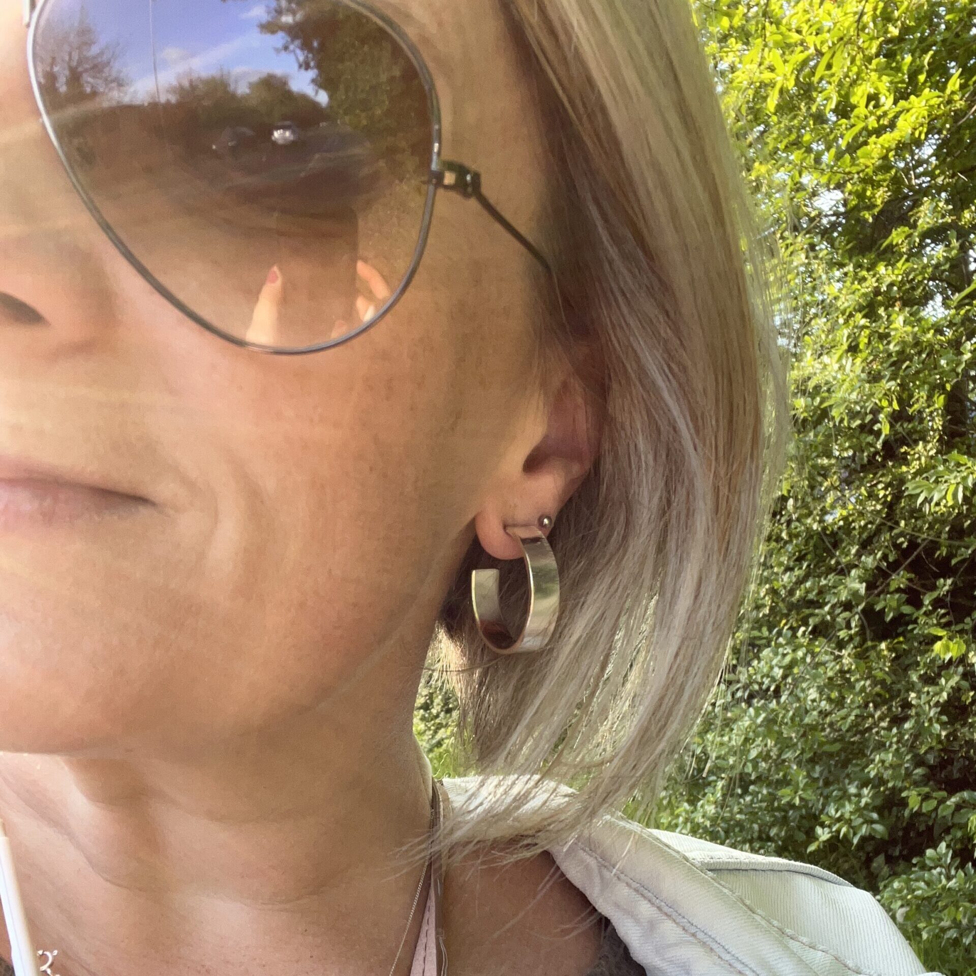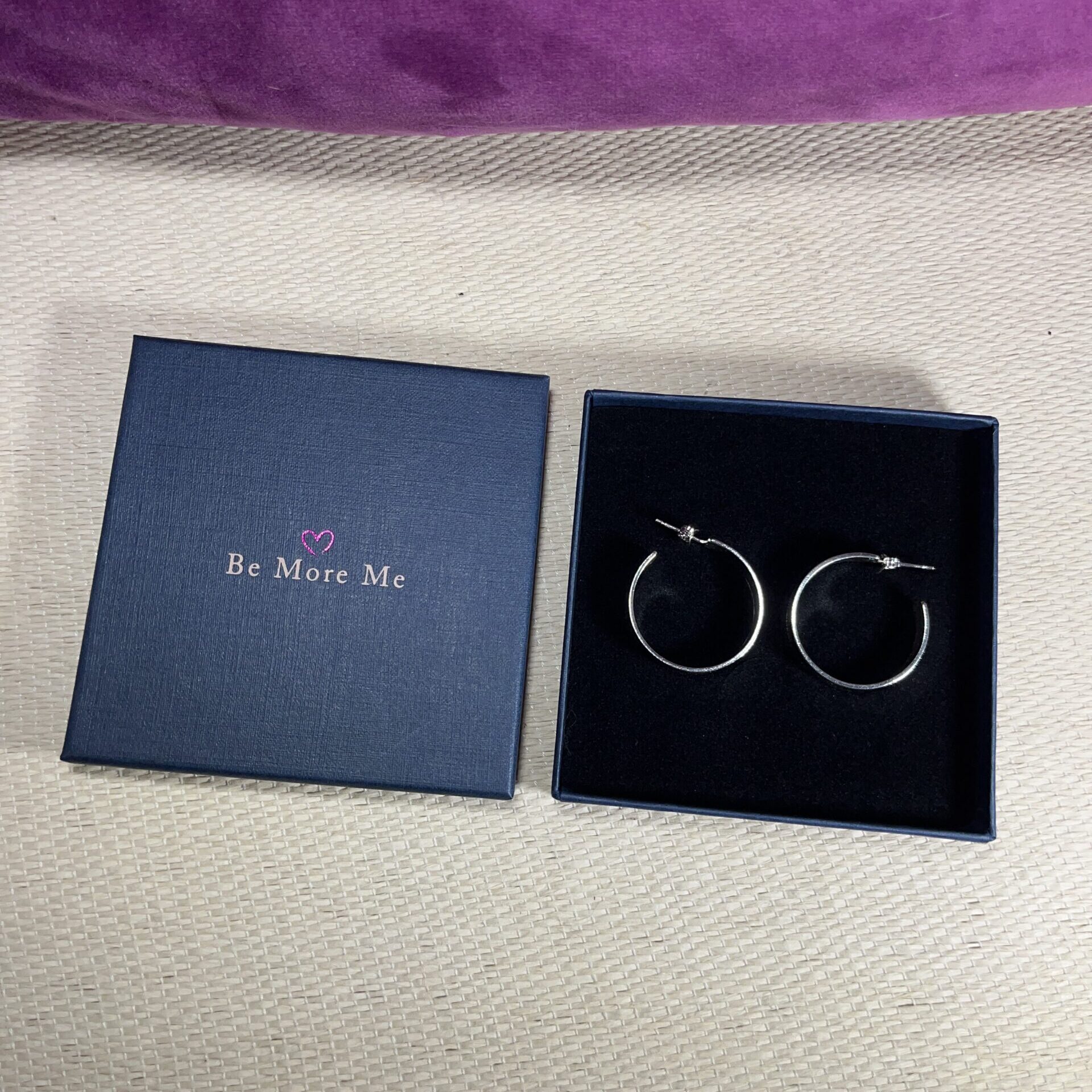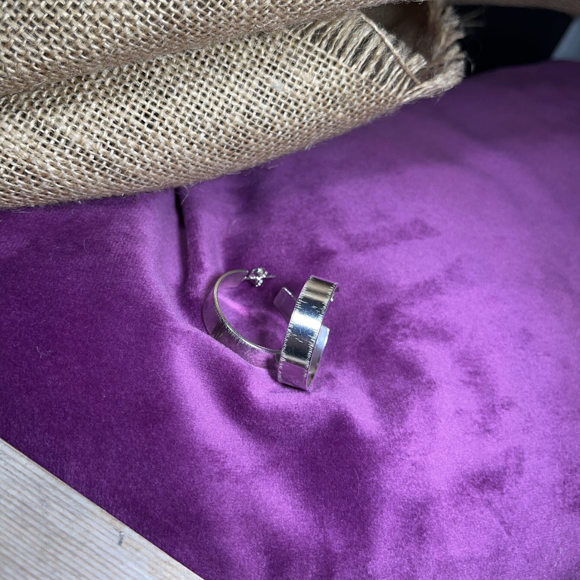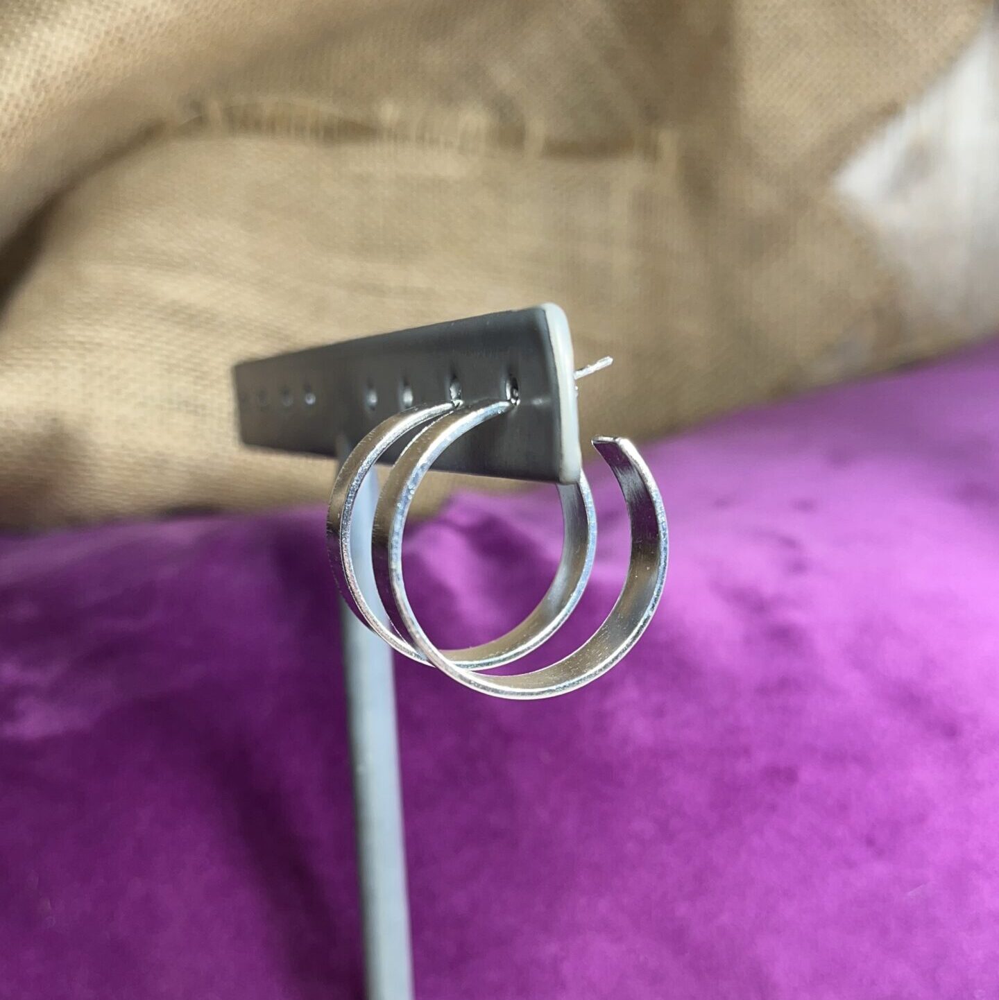 Sterling silver hoops formed from silver sheet and textured with hammered chipping.