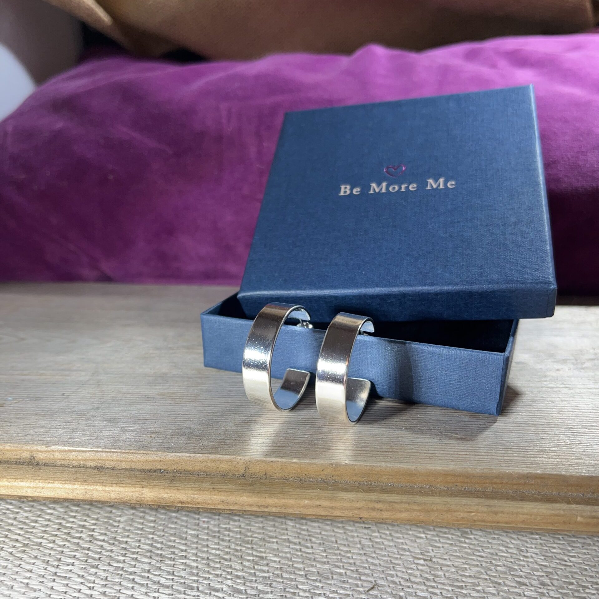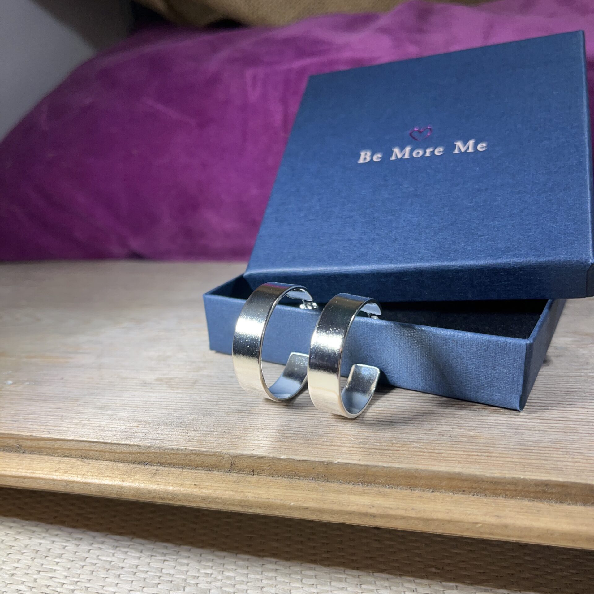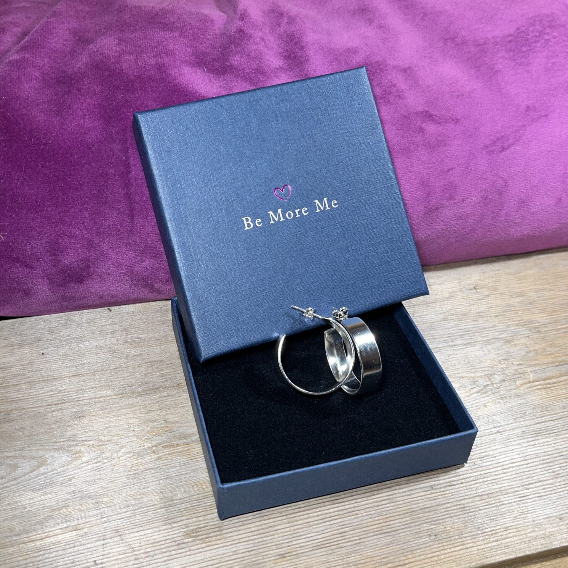 Sterling silver hoops formed from silver sheet with a smooth and shiny finish.