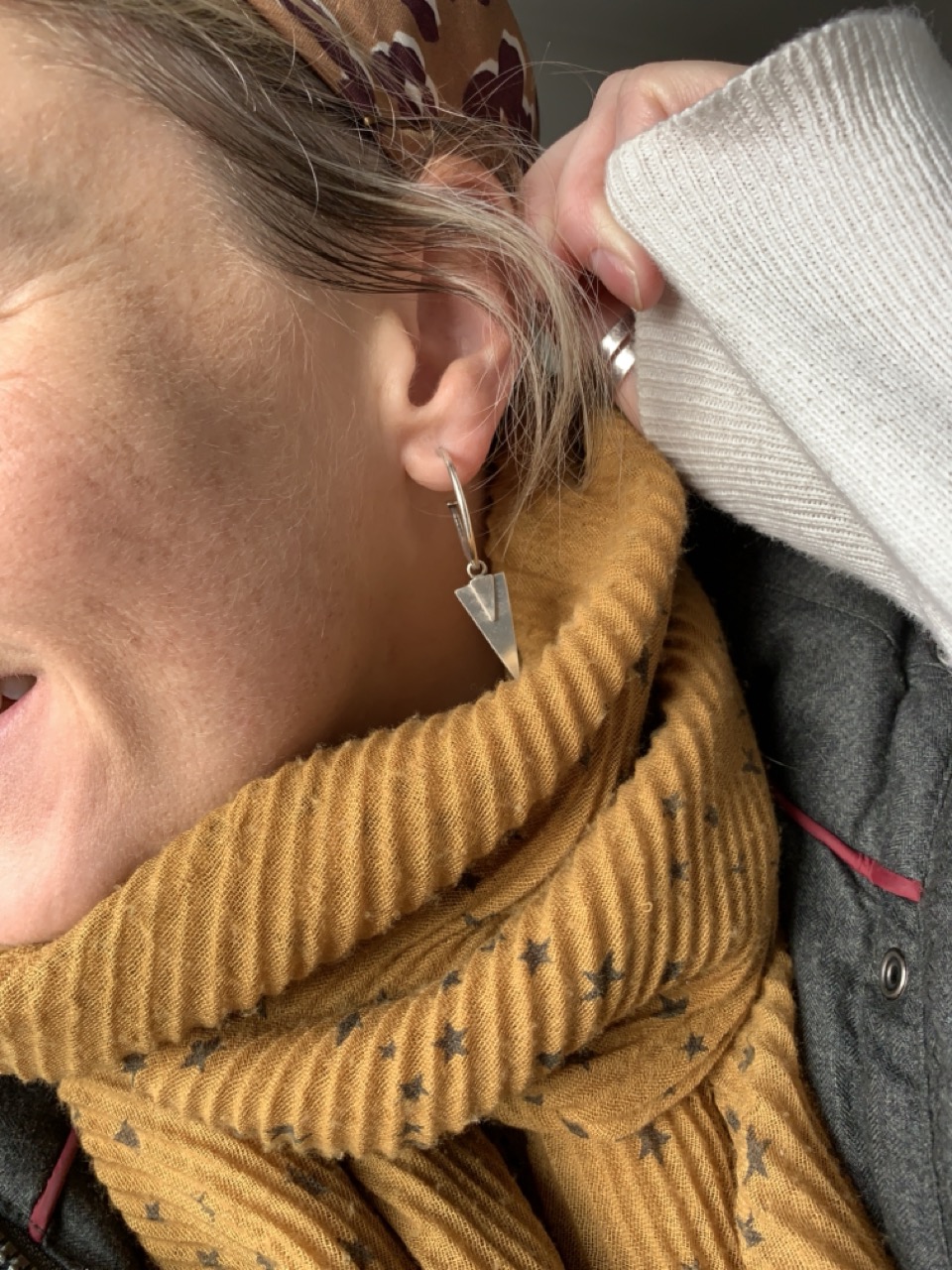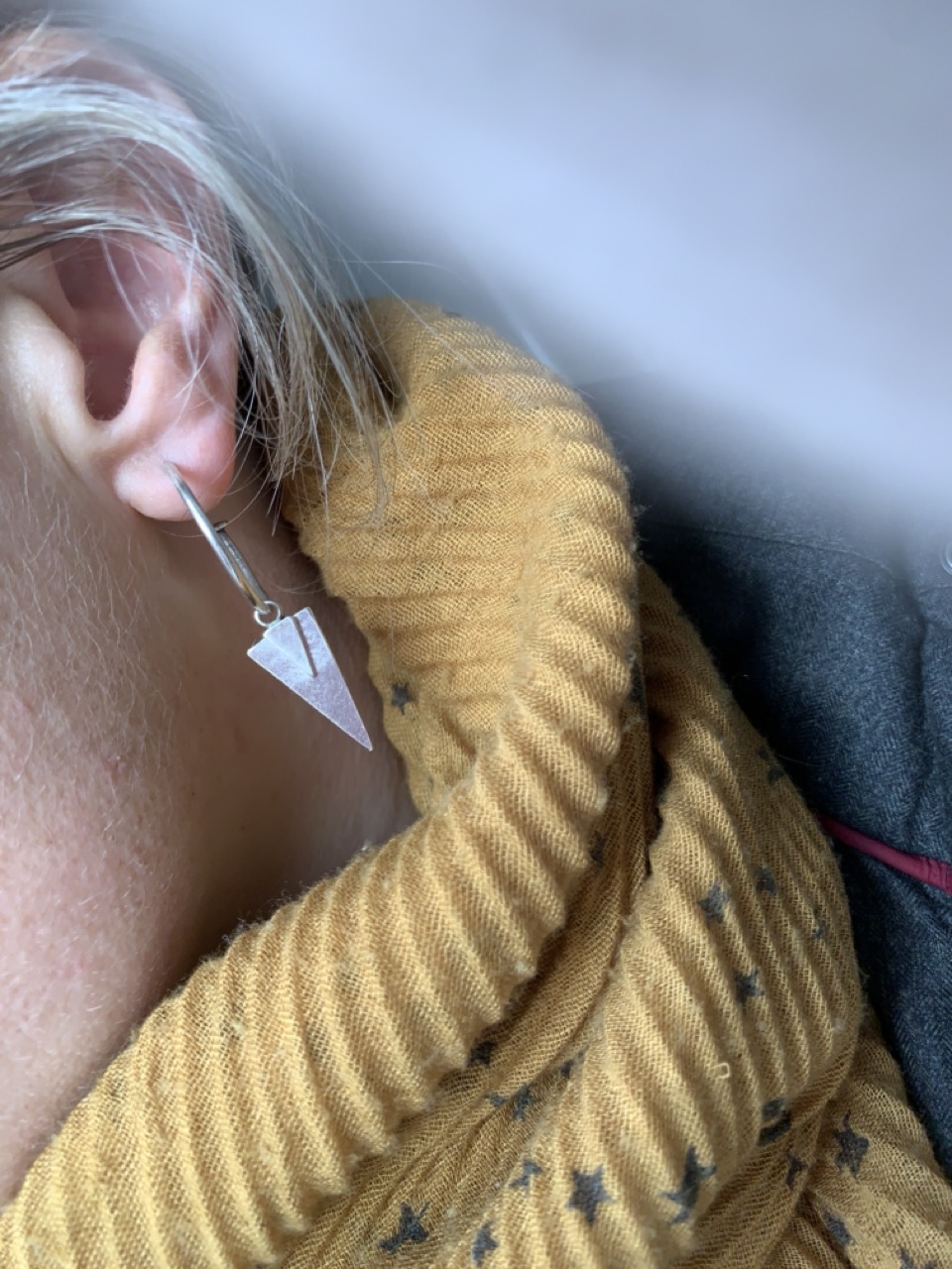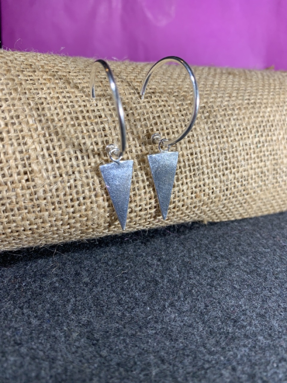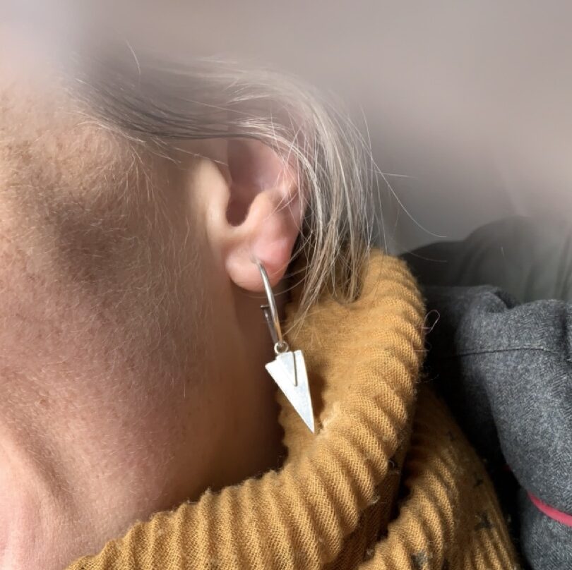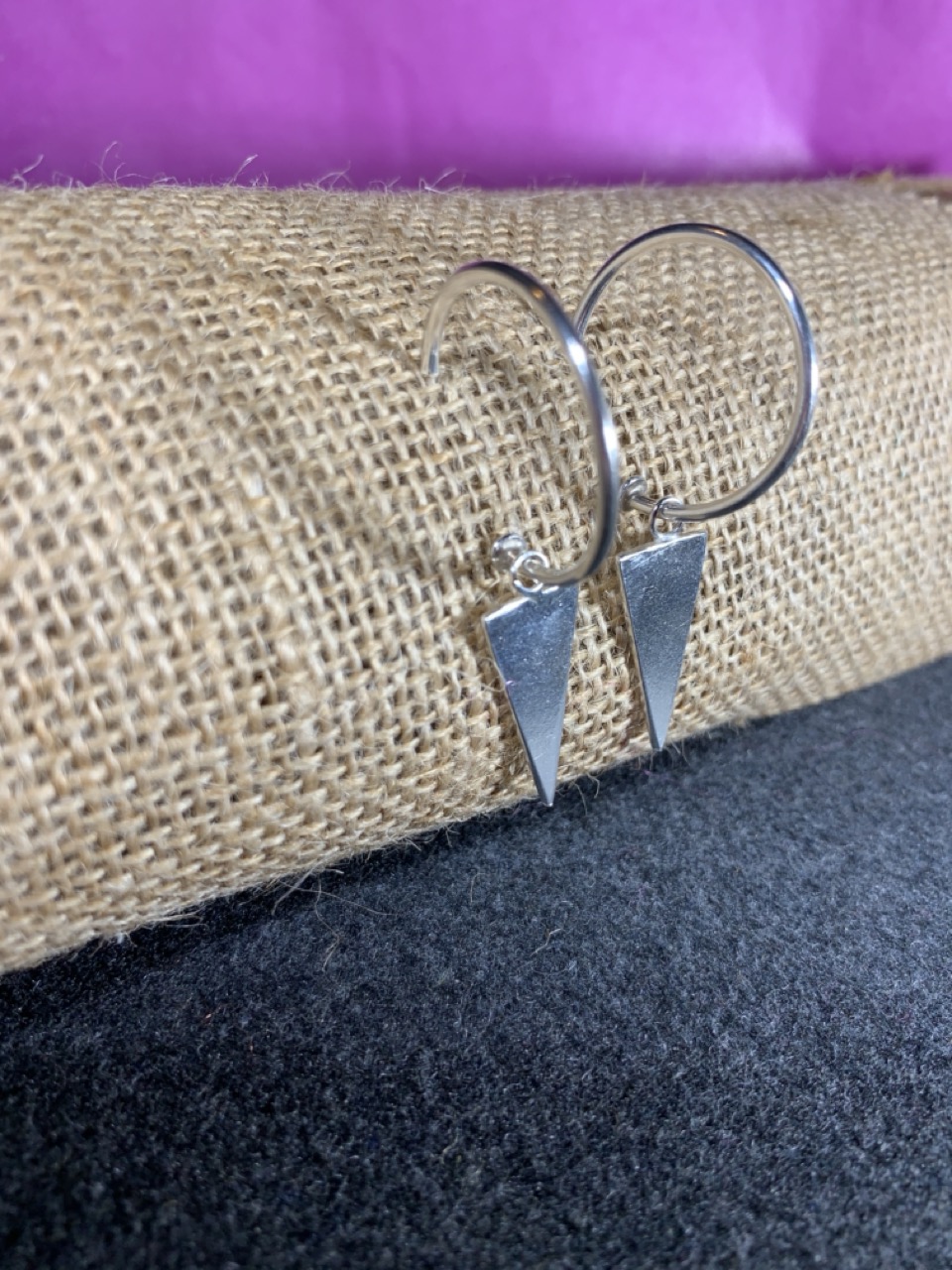 Each triangle is sawn by hand from 1mm sterling silver sheet and each hoop hand-formed using 1.5mm wire, so every pair is bespoke to you.