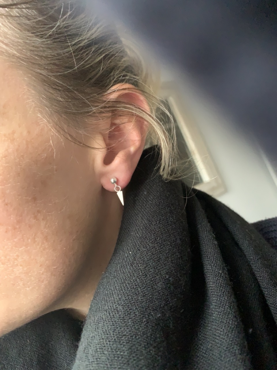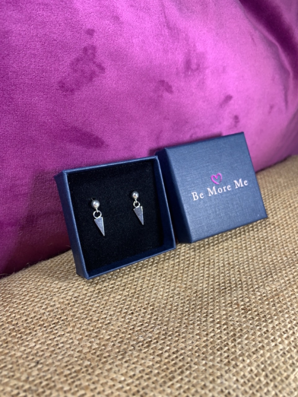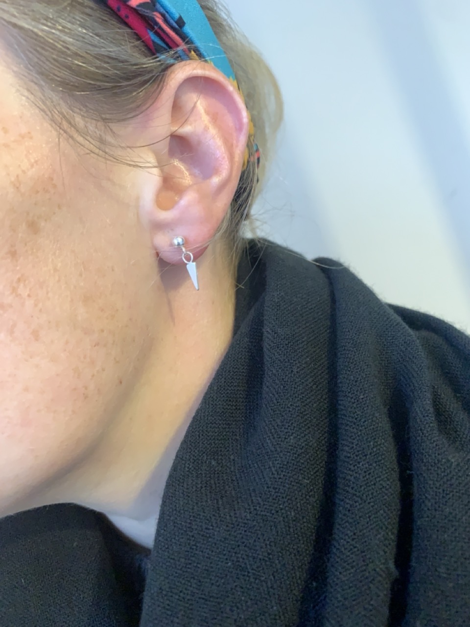 Each triangle is sawn by hand from 1mm sterling silver sheet, so every pair is bespoke to you.
