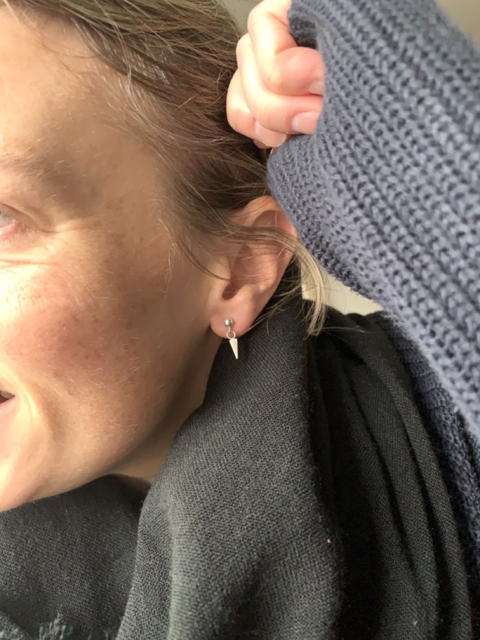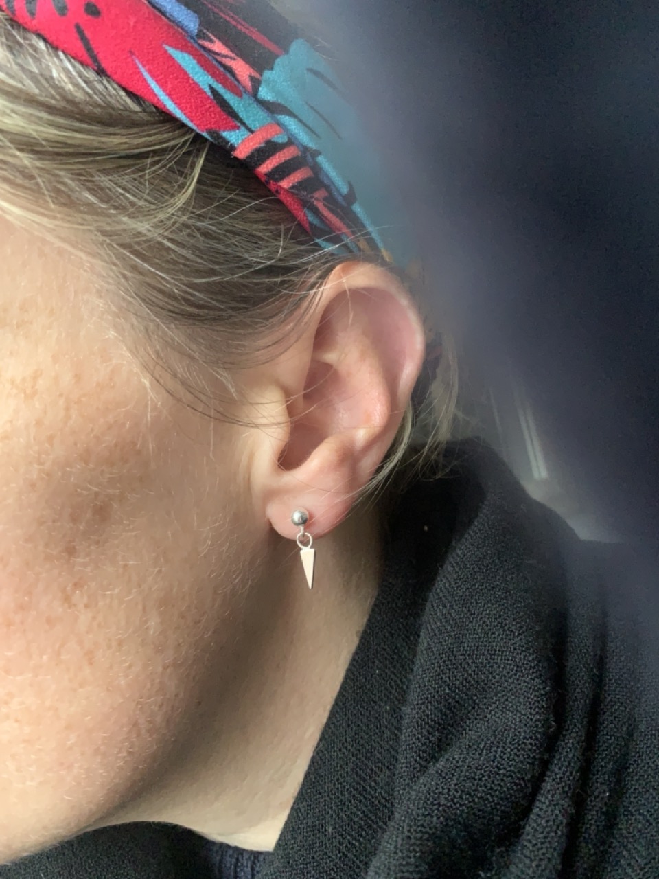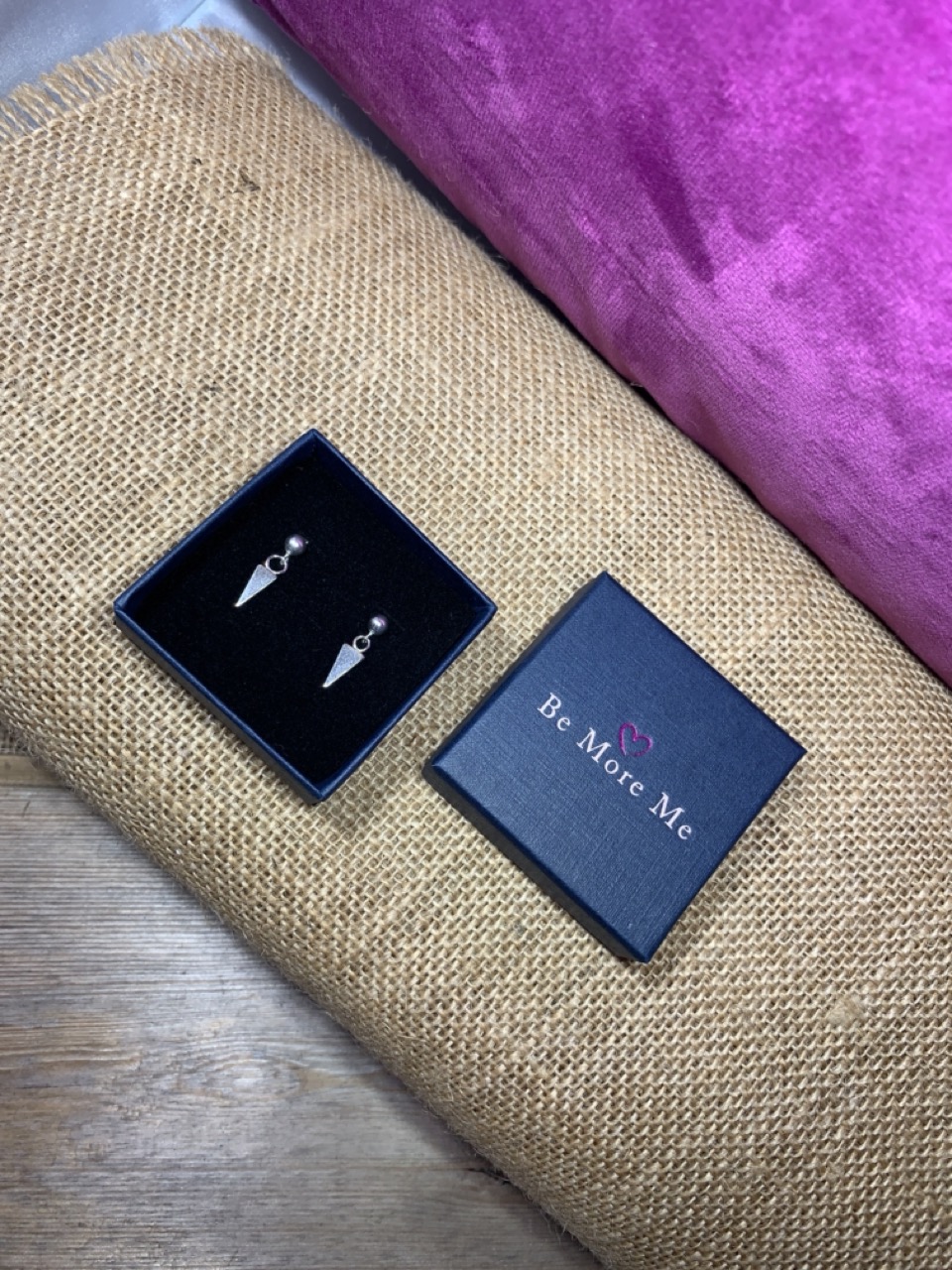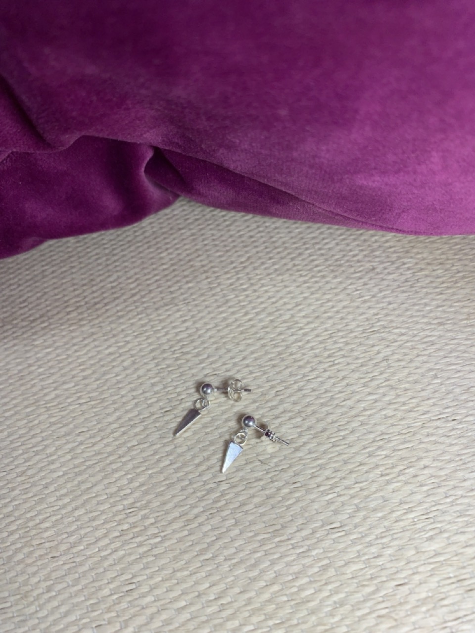 Each triangle is sawn by hand from 1mm sterling silver sheet, so every pair is bespoke to you.